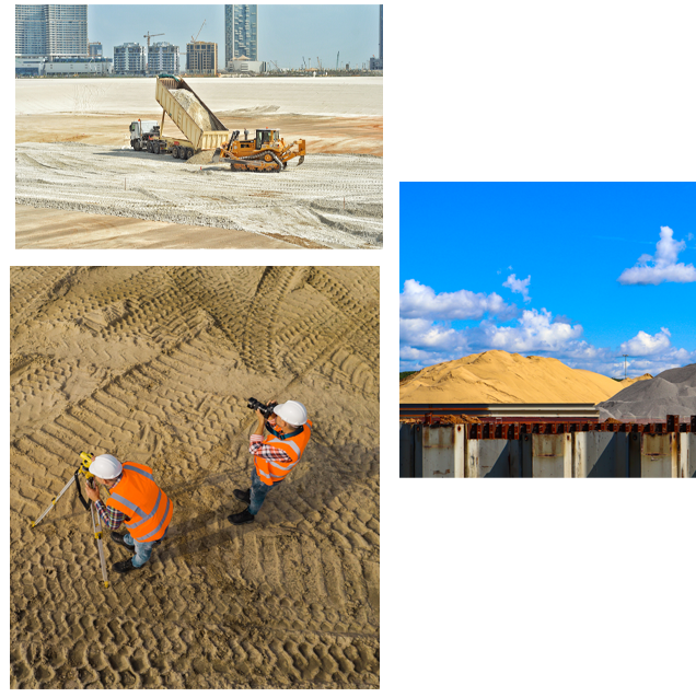 رمل وحصى بجودة عالية تفي بجميع المعايير الدولية للبناء والتشييد.